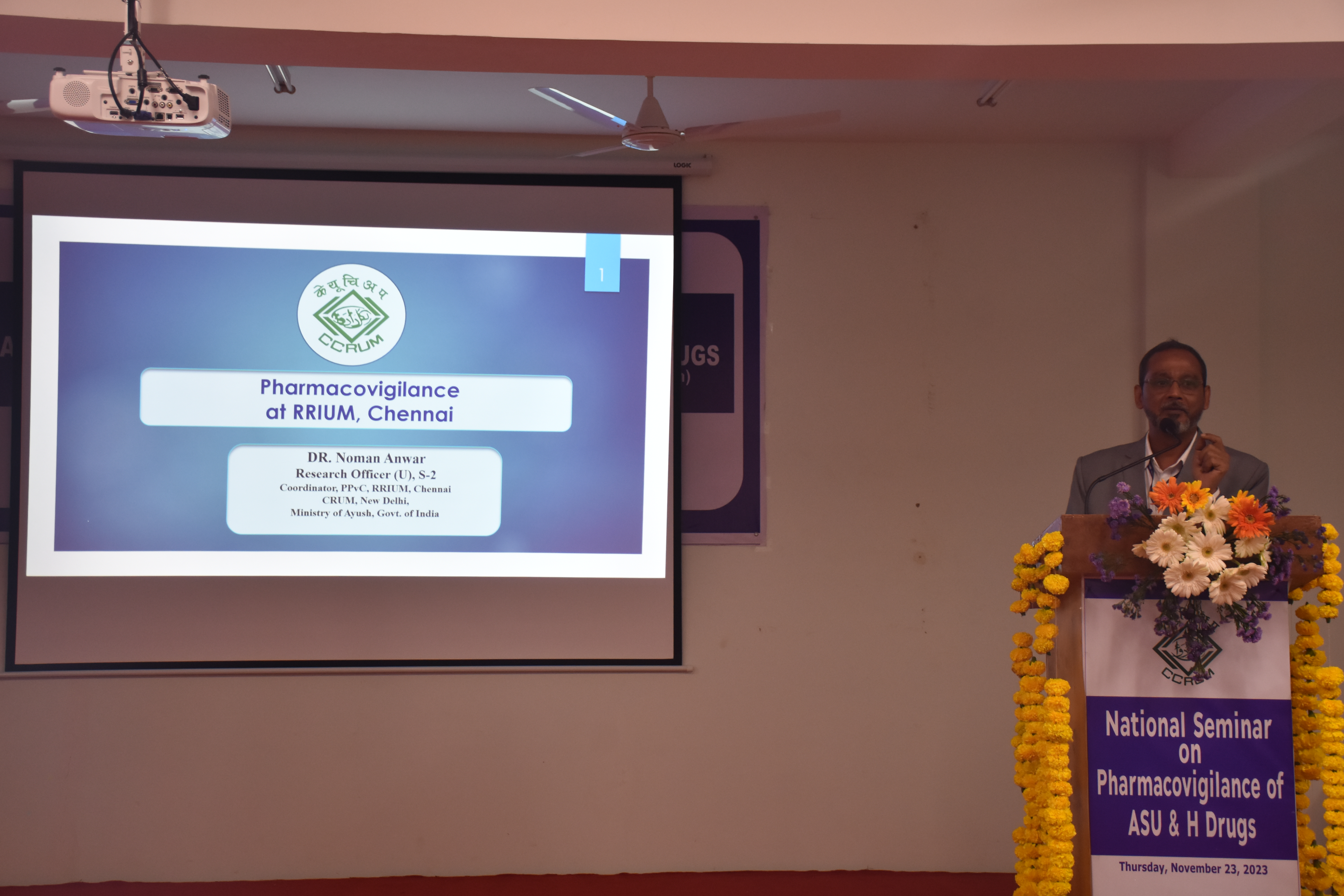 The institute has a well-established Pharmacovigilance unit working under the Central Scheme for Pharmacovigilance of ASU & H drugs, Ministry of Ayush, Govt. of India. The institute was designated as the Peripheral Pharmacovigilance Centre (PPvC) for Unani drugs in January 2018 and started working on reporting adverse drug reactions (ADRs) and misleading / objectionable advertisements and conducting awareness lectures and workshops in order to inculcate habits and establish a reporting culture among all the stakeholders, including practitioners, pharmacists, health workers, and patients. The RRIUM Chennai is the only Unani centre in the state that has been governed by the Ministry of Ayush, Govt. of India, for Pharmacovigilance activity and has always been committed for providing safe drugs to patients. The institute has been awarded the “Best-Performing Peripheral Pharmacovigilance Centre for the year 2020”.
